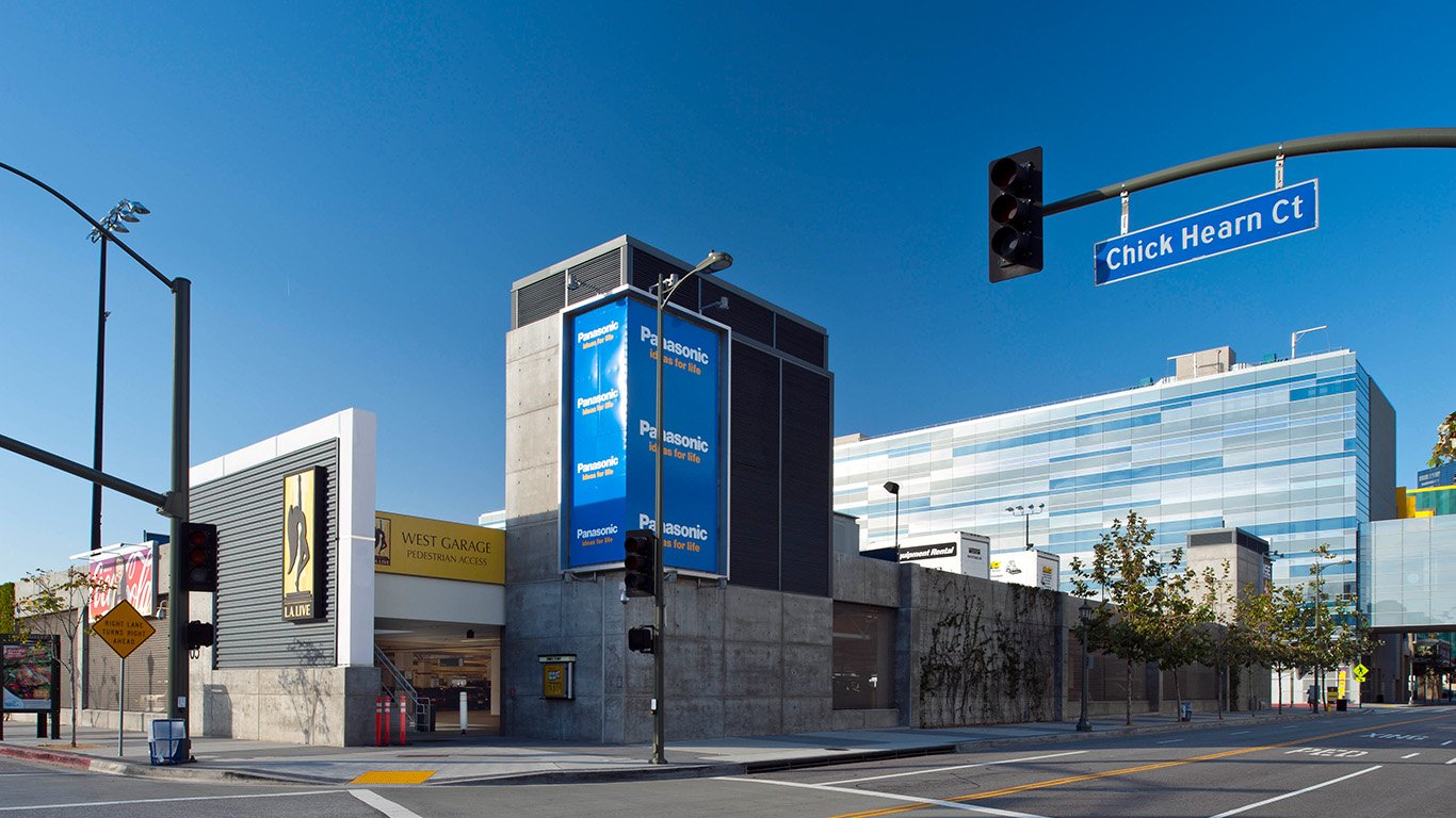 The Olympic West Parking Structure is a 1,000,000-square-foot facility on six acres in downtown Los Angeles designed to accommodate up to 2,700 vehicles. Primarily serving events at L.A. Live, Staples Center (now Crypto.com) Arena and the Los Angeles Convention Center, the parking structure responded to the overwhelming demand of the bustling urban landscape around it.